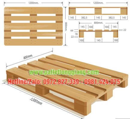 Pallet có quy chuẩn chung trong thiết kế theo tiêu chuẩn Việt Nam và Quốc tế. Kích thước này thay đổi theo từng nơi sản xuất nhưng không chênh lệch quá lớn. Một số kích thước (dài x rộng x cao) pallet gỗ phổ biến hiện nay: